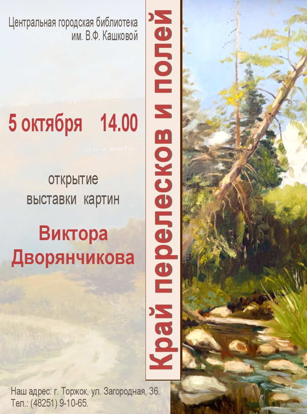 5 октября в 14:00 Центральная городская библиотека им. В.Ф. Кашковой распахнет свои двери для всех ценителей изобразительного искусства. В этот день состоится открытие персональной выставки картин Виктора Дворянчикова.