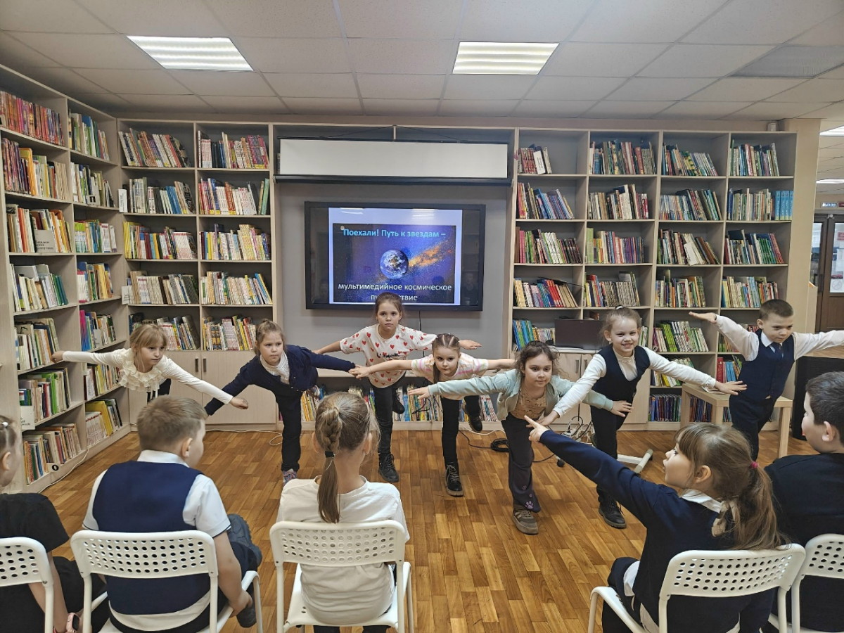 Детская библиотека № 1 организовала серию увлекательных мероприятий для учащихся группы продлённого дня СОШ № 8 в рамках тематической недели, приуроченной ко Дню космонавтики: юные читатели отправились в мультимедийное космическое путешествие «Поехали! Путь к звёздам».