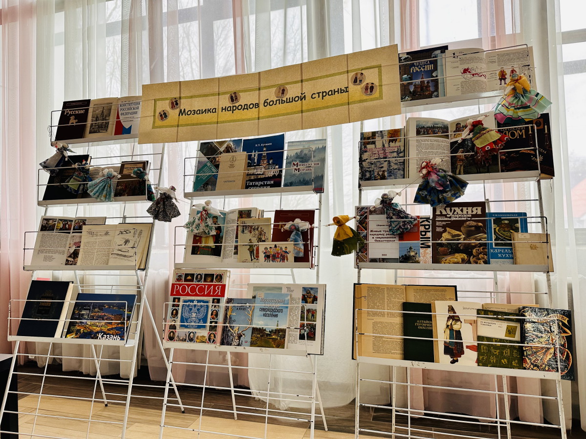 В Центральной городской библиотеке подготовлена книжно‑иллюстративная выставка «Мозаика народов большой страны», где можно познакомиться с изданиями об истории, культуре и кулинарии народов России.