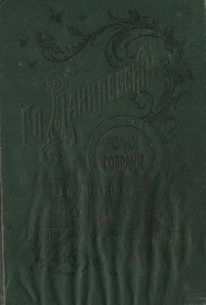 Книгу Г. П. Данилевского «Сочинения», изданную в Санкт‑Петербурге в 1901 году, нам передали в фонд редких книг ЦГБ им. В. Ф. Кашковой родственники почётного гражданина города Торжка, участника Великой Отечественной войны, ветерана труда, врача высшей категории Веры Станиславовны Бобэк (1919–2010) после её смерти.