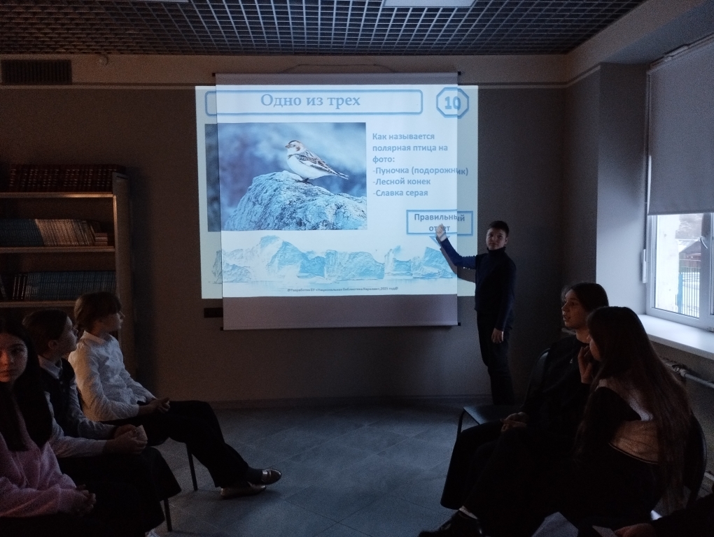 Фото к мероприятию 18 ноября главный библиограф Центральной городской библиотеки им. В. Ф. Кашковой Г. Н. Сиденко провела для учащихся МБОУ «Центр образования» интеллектуальный марафон «Наши в Арктике, или Арктика далёкая и близкая».