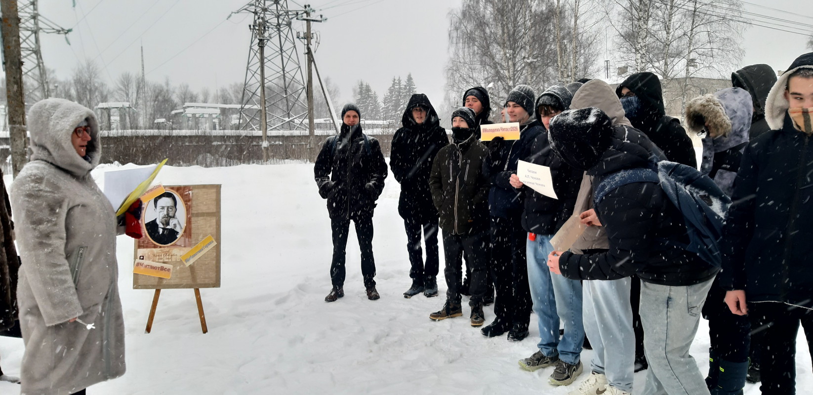 29 января исполняется 166 лет со дня рождения А. П. Чехова. Накануне этой даты сотрудники Центральной городской библиотеки им. В. Ф. Кашковой совместно с учащимися ГБП ОУ «Торжокский государственный промышленно‑гуманитарный колледж» провели интерактивную прогулку «Читаем А. П. Чехова на улице Чехова». Студенты с энтузиазмом присоединились к литературной акции, несмотря на метель и прохладу.
