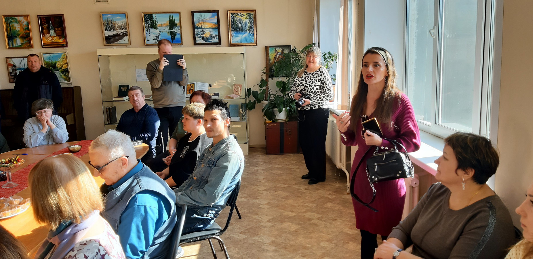 С добрыми словами поддержки и благодарности за творчество выступила художница из Торжка Ольга Котова. От лица библиотеки гостей поздравила Т. Н. Ипатова, заведующая отделом ОУФ. Она пожелала, чтобы выставка принесла всем посетителям радость, а художнику — гордость и вдохновение для новых свершений.