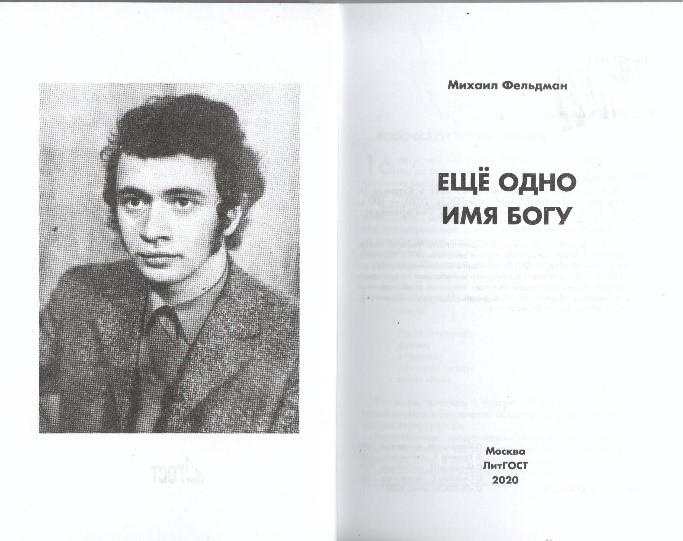 Фельдман М. Ещё одно имя Богу: стихотворения / сост. Б. Кутенков, Н. Милешкин, Е. Семёнова. - Москва: ЛитГОСТ, 2020. - 100 с. - (Поэты литературных чтений «Они ушли. Они остались»).