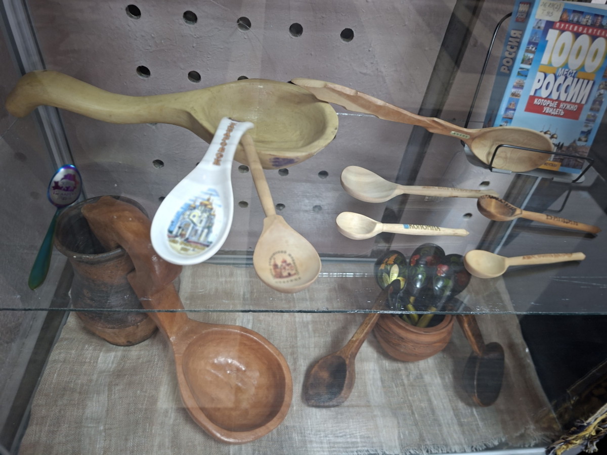 Ложки она собирает почти десять лет: многие покупает в поездках, а некоторые ей дарят друзья. На выставке представлены деревянные изделия из этой коллекции.